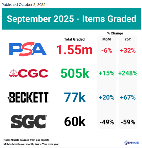 Think I’m overreacting? Well, let’s take a look at Gemrate’s September card grading data: